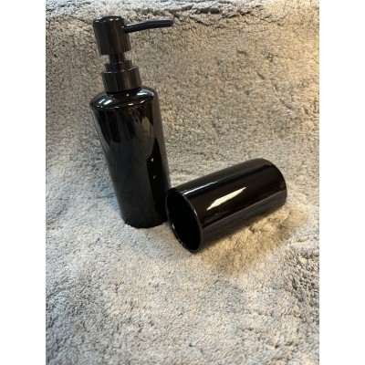 Dispenser Γυάλινο Μαύρο Ματ Με Χρυσά Γράμματα