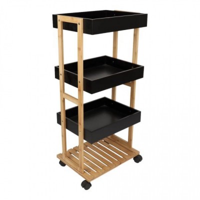 Τρόλλεϊ Ραφιέρα Ξύλινη 4 Θέσεων Σε Μαύρο Χρώμα 40x30x88εκ. 831791