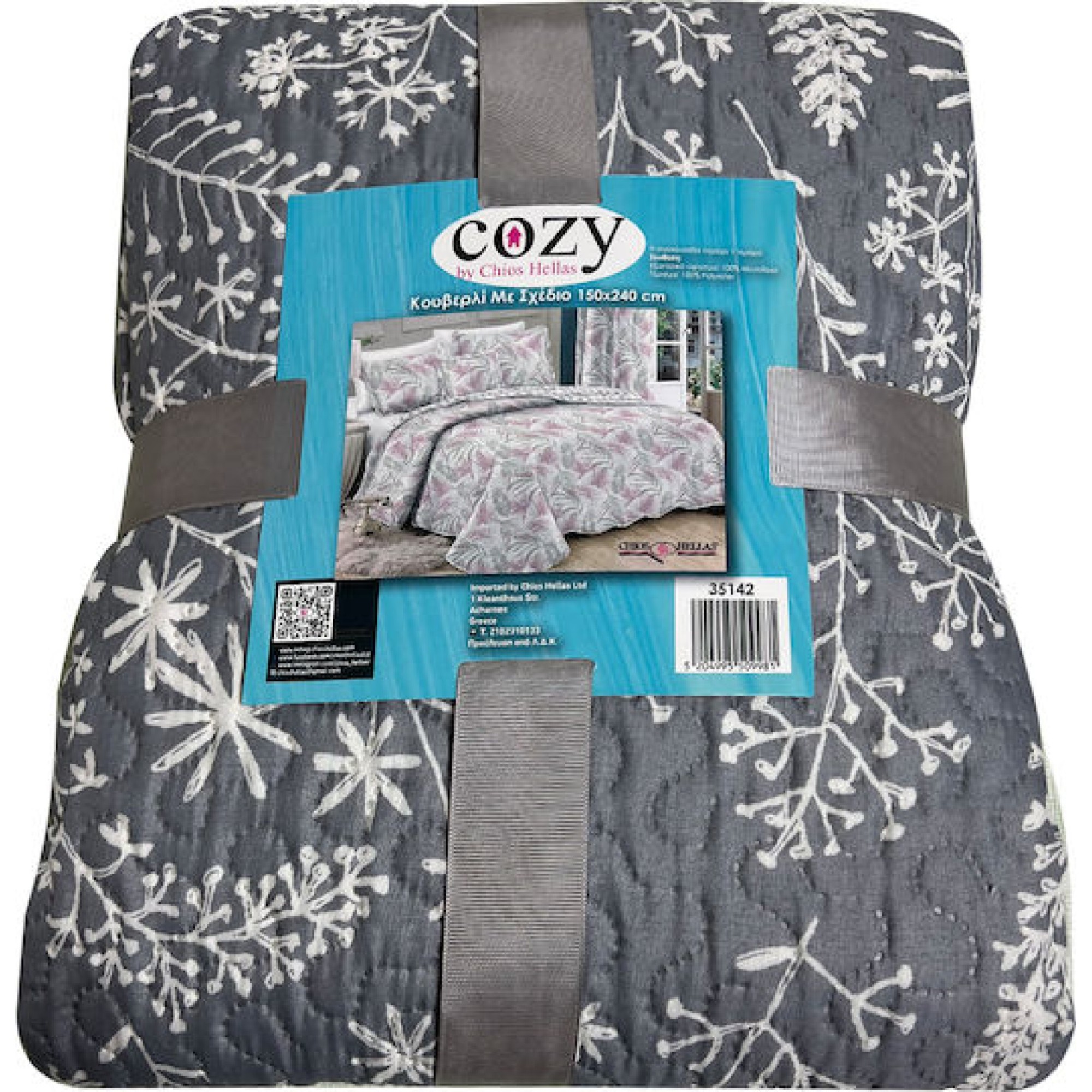 Κουβερλί Μονό Με Σχέδιο Λευκό-Γκρι