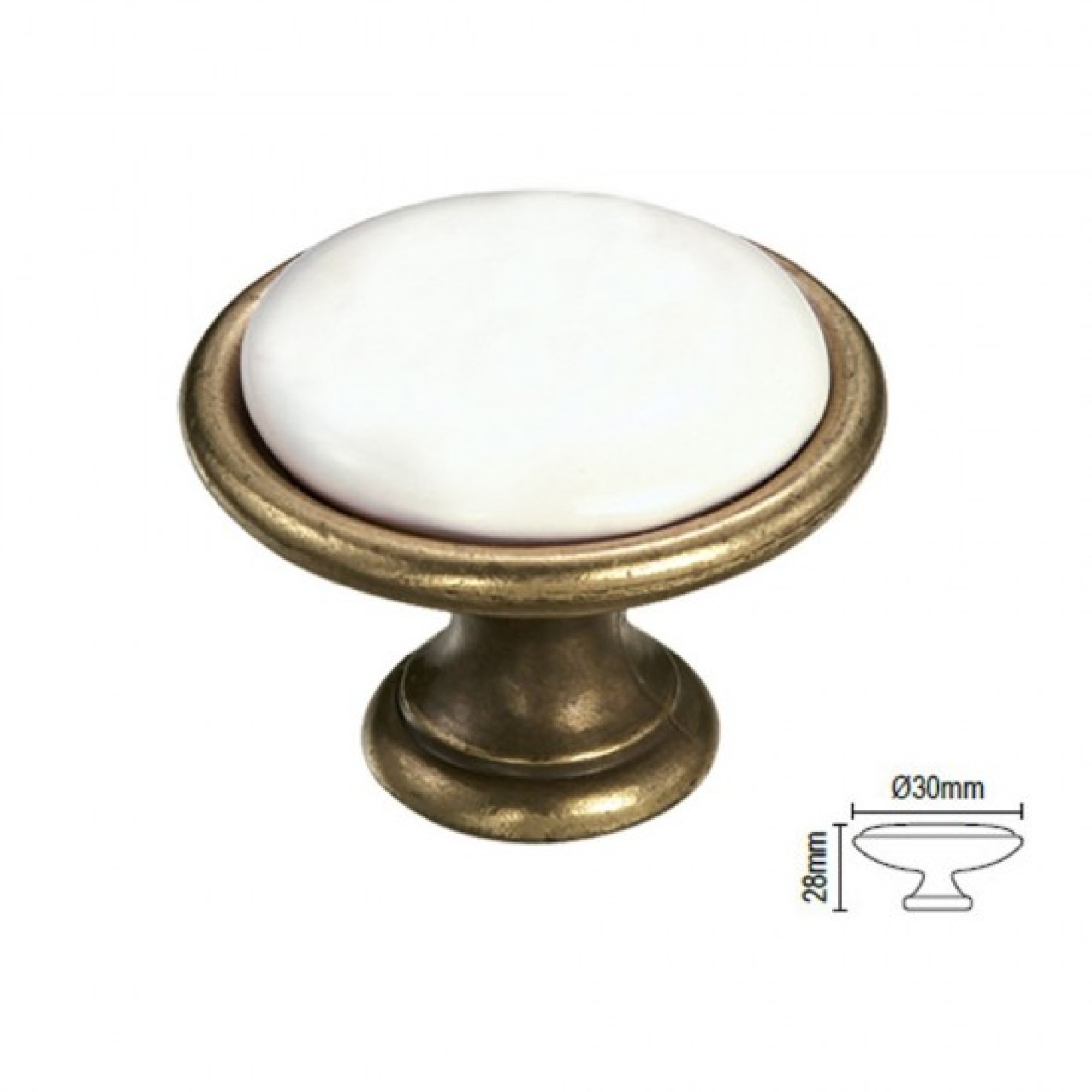 Πομολάκι Επίπλου Viometale 01.148 Αντικέ-White Πορσελάνη Φ30mm