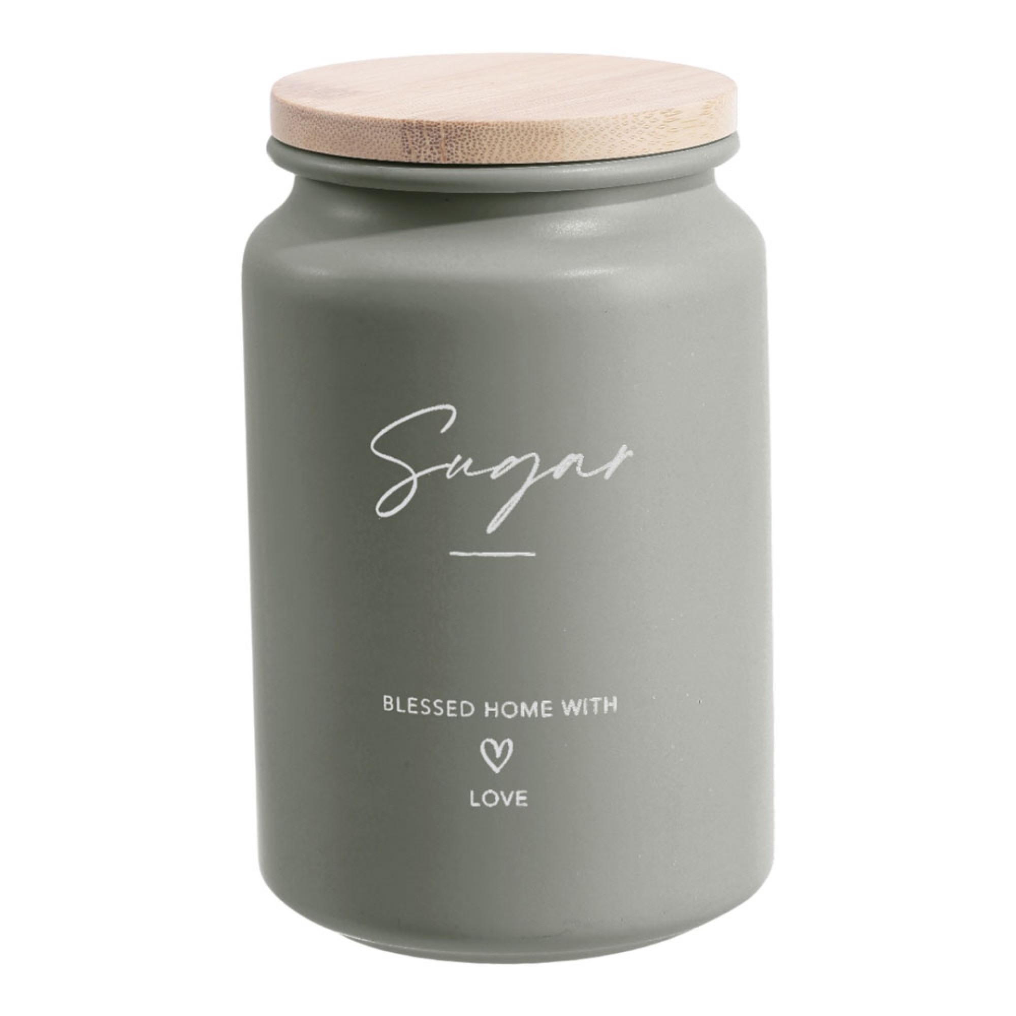 Σετ 2 μεταλλικά βάζα Coffee & Sugar σε λαδί ματ χρώμα με διακριτική επιγραφή. Διαθέτουν μπαμπού καπάκι και εσωτερική σιλικόνη για αεροστεγές κλείσιμο, προστατεύοντας το περιεχόμενο από την υγρασία.