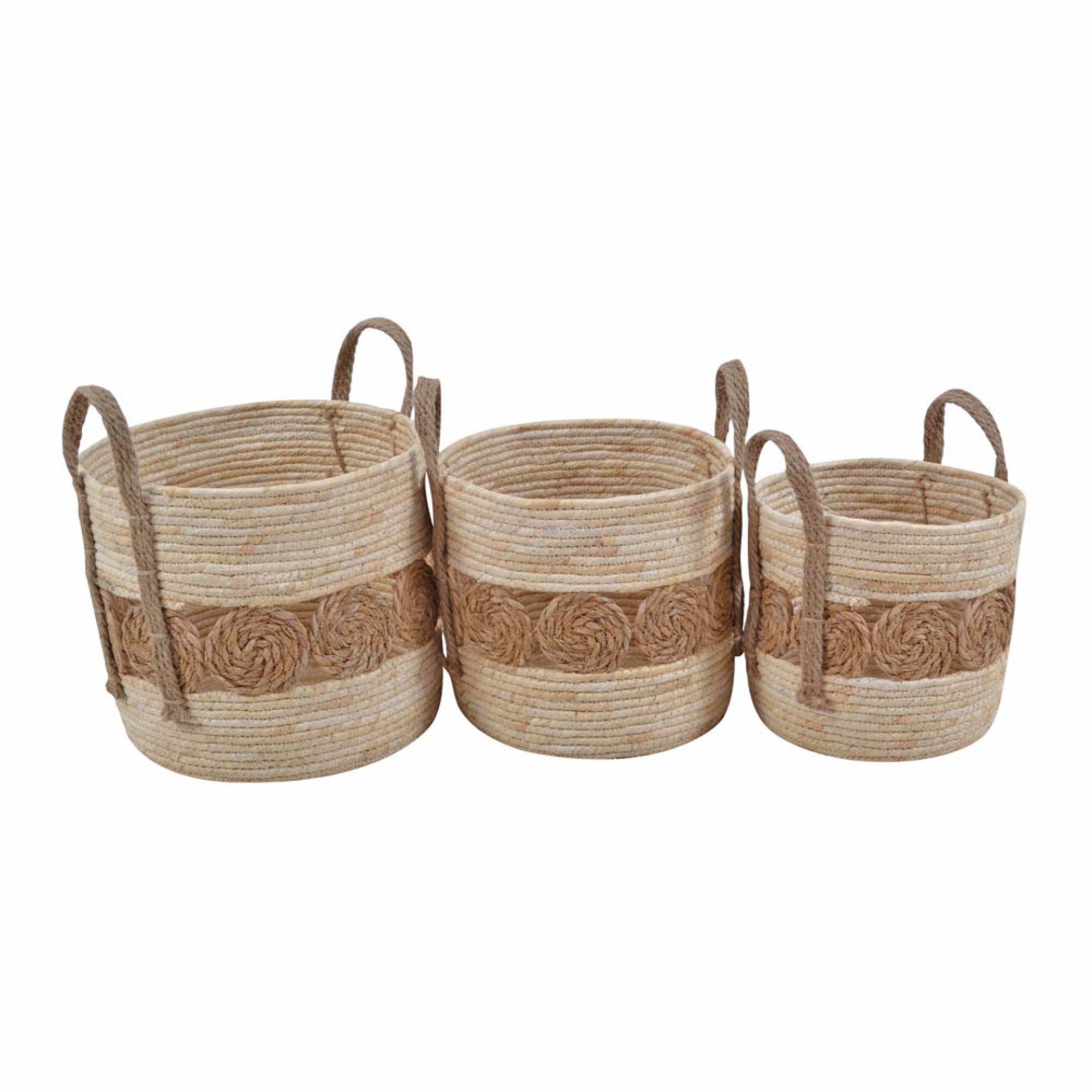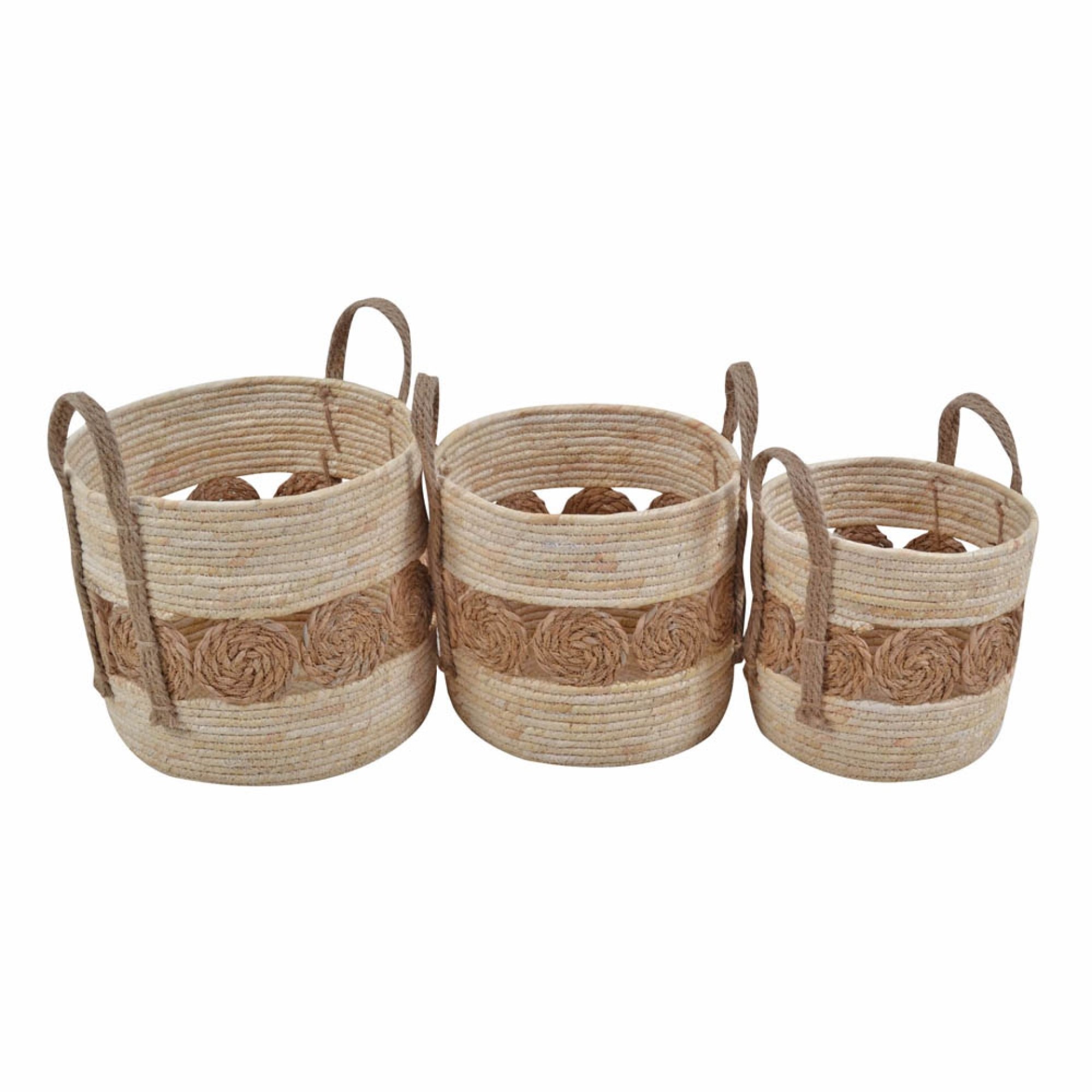 Σετ 3 Τεμαχίων Καλάθια Ψάθινα Σε Φυσικό Χρώμα Κύκλοι ANKOR 824281